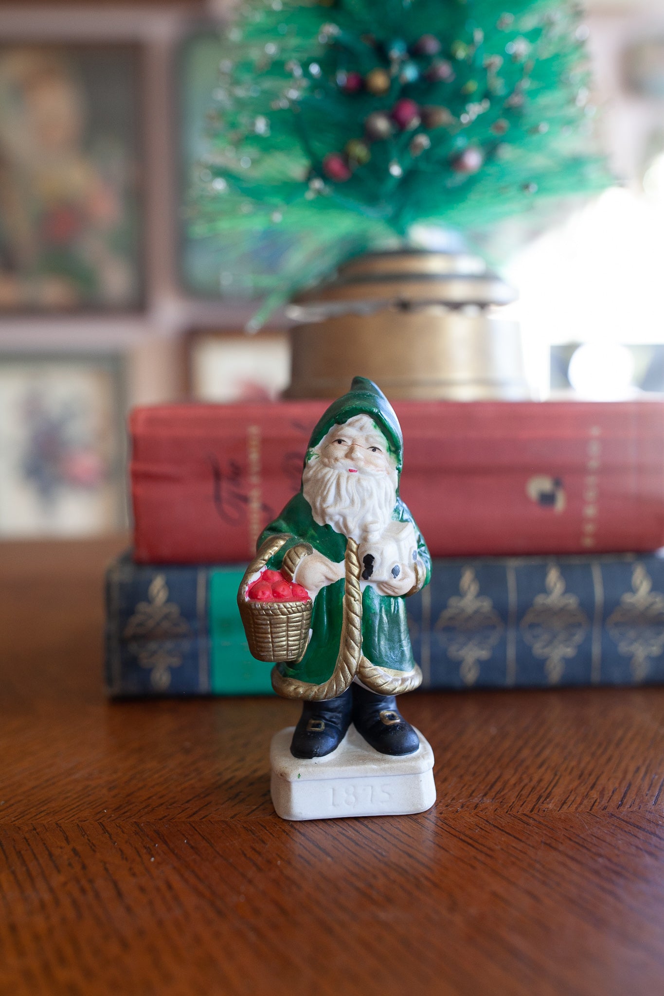 Vintage Santa Claus- Green Santa -Porcelain