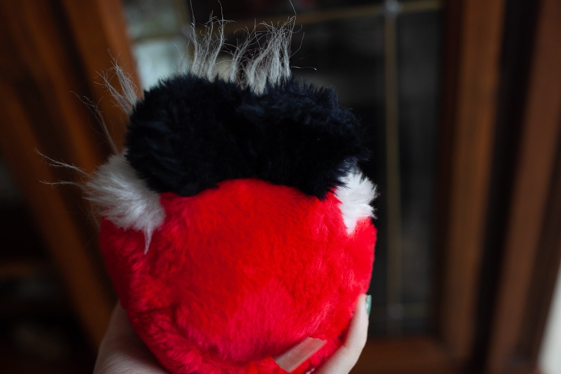This funny guy is a rubber faced, plush body, gnome like Santa! He was made in 1984 by Rennoc. He is just so funny and charming! He is about 8" tall and about 4.5" wide.