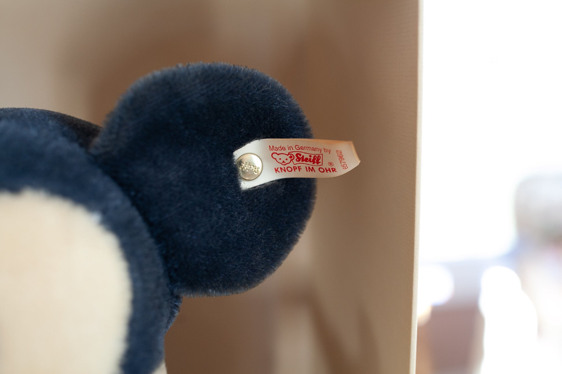 1814/2000 limited edition -Mickey Mouse by Disney and Steiff. 1997 year- button tag in ear, hang tag still with the box, scroll with limited edition info, original box base, but no lid. This Mickey was displayed for years by the original owner, but never played with or really even moved. It did have some dust collected with a little yellowing of the white areas of Mickey from the years, so potentially needs a nice cleaning, but in great shape. Mickey is about 14" tall.