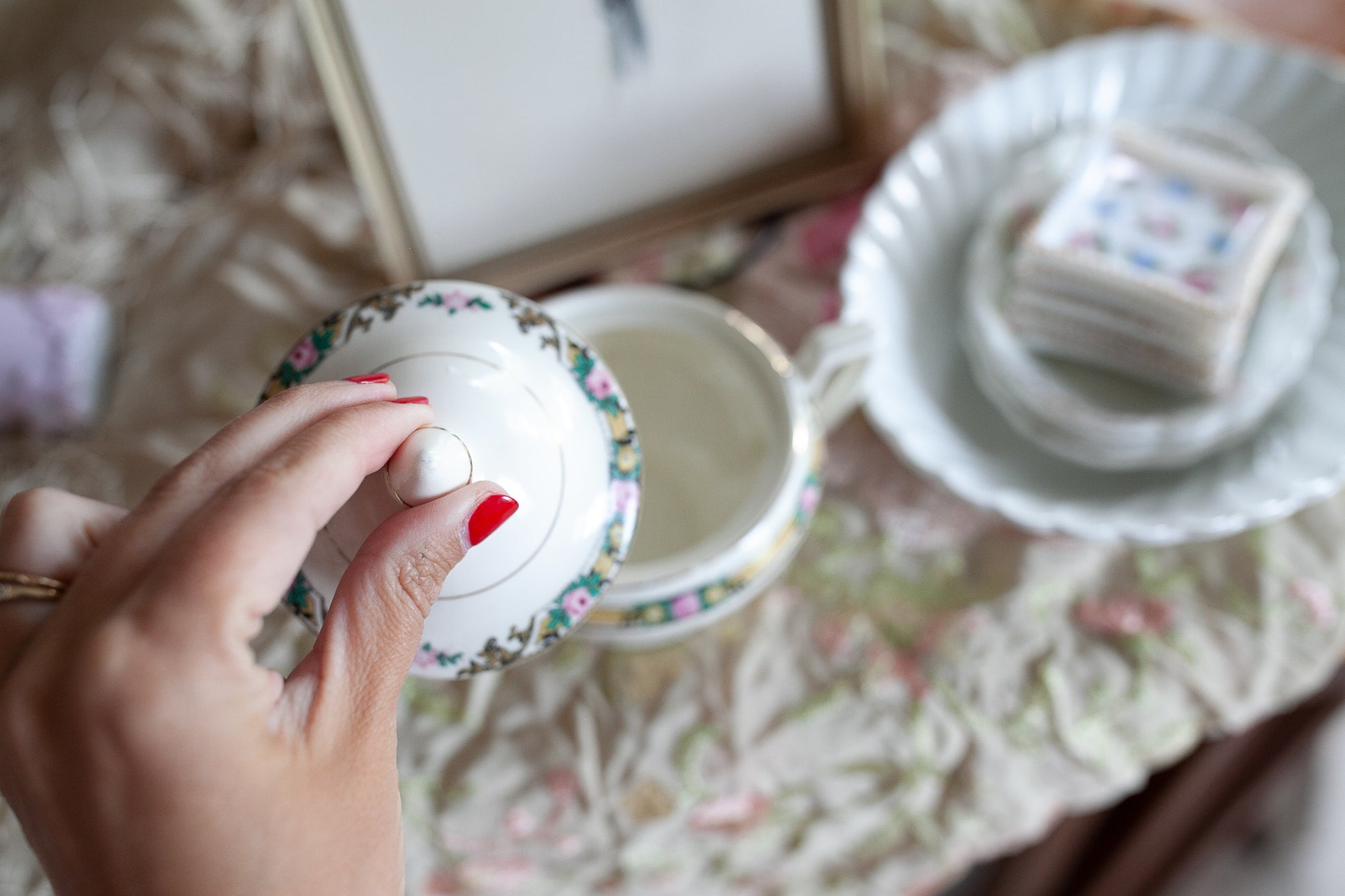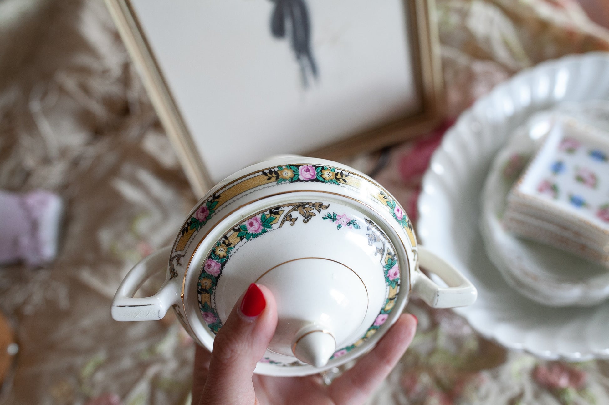 Vintage Sugar Bowl- Lidded Bowl with two Handles - Floral