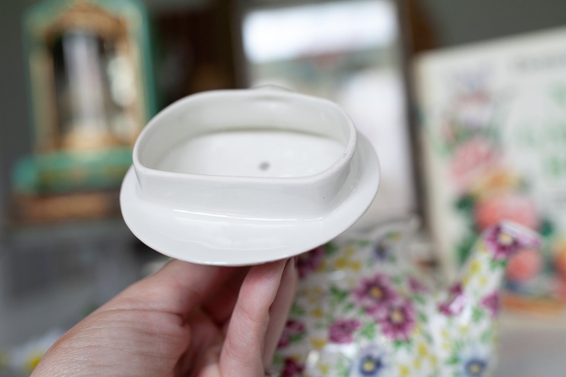 Vintage Windsor England Chelsea Chintz Summer Pink Flowers Floral 22k Gold Rim -Teapot holds approx 6 cups. The size is about 5" tall and 6.75" to the top of the lid. Spout to handle edge is about 9". The lid has one chip in it see photos. Clean and beautiful the florals are stunning!