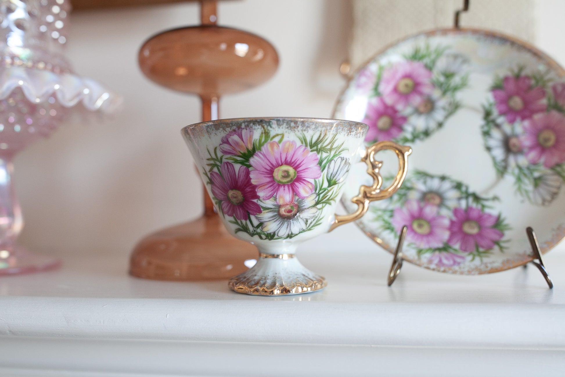 Vintage Teacup and Saucer- Cosmos October Saucer and teacup