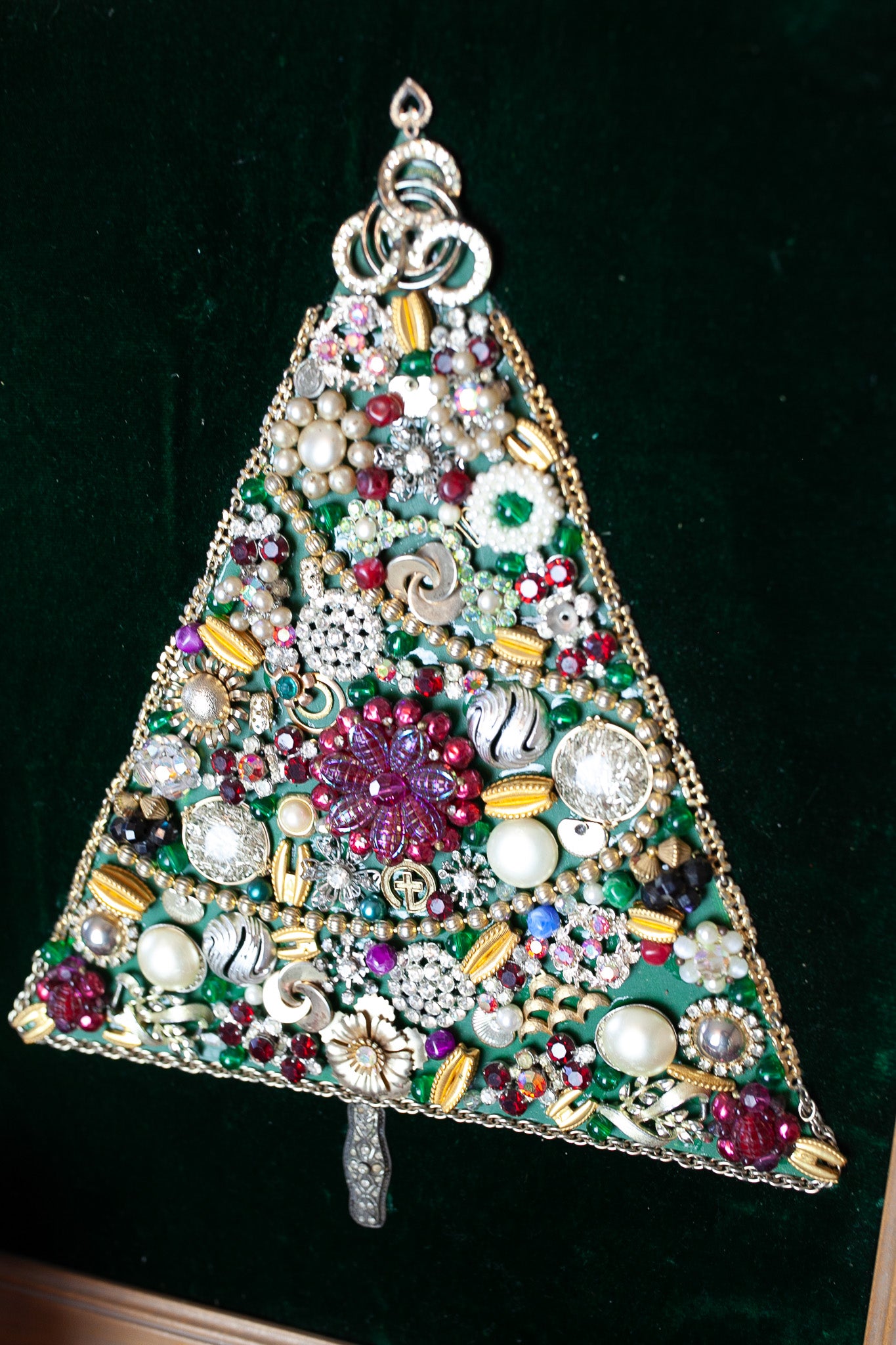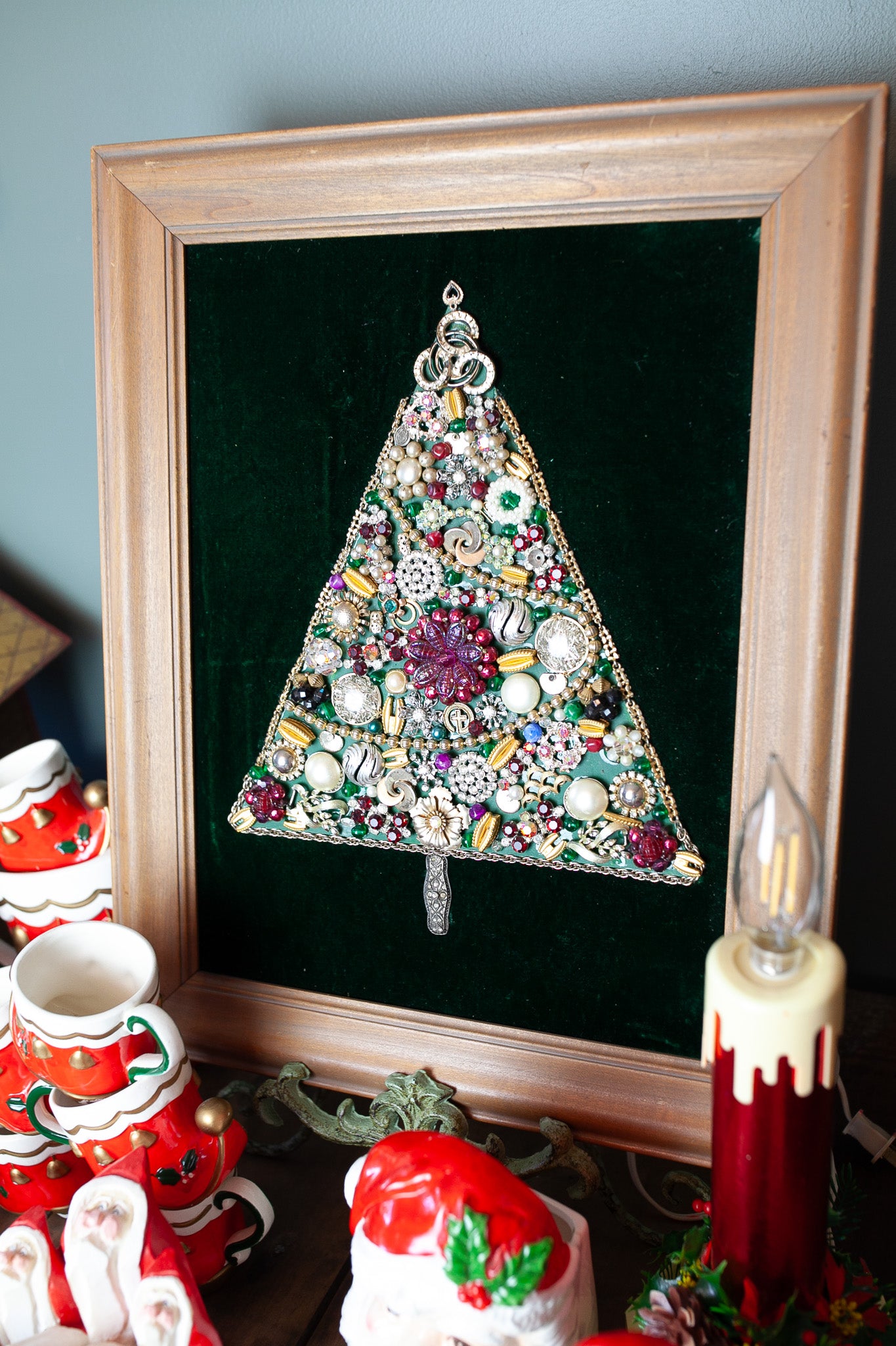 Vintage Tree Art - Christmas Artwork- Vintage Christmas Tree- Brooch Tree