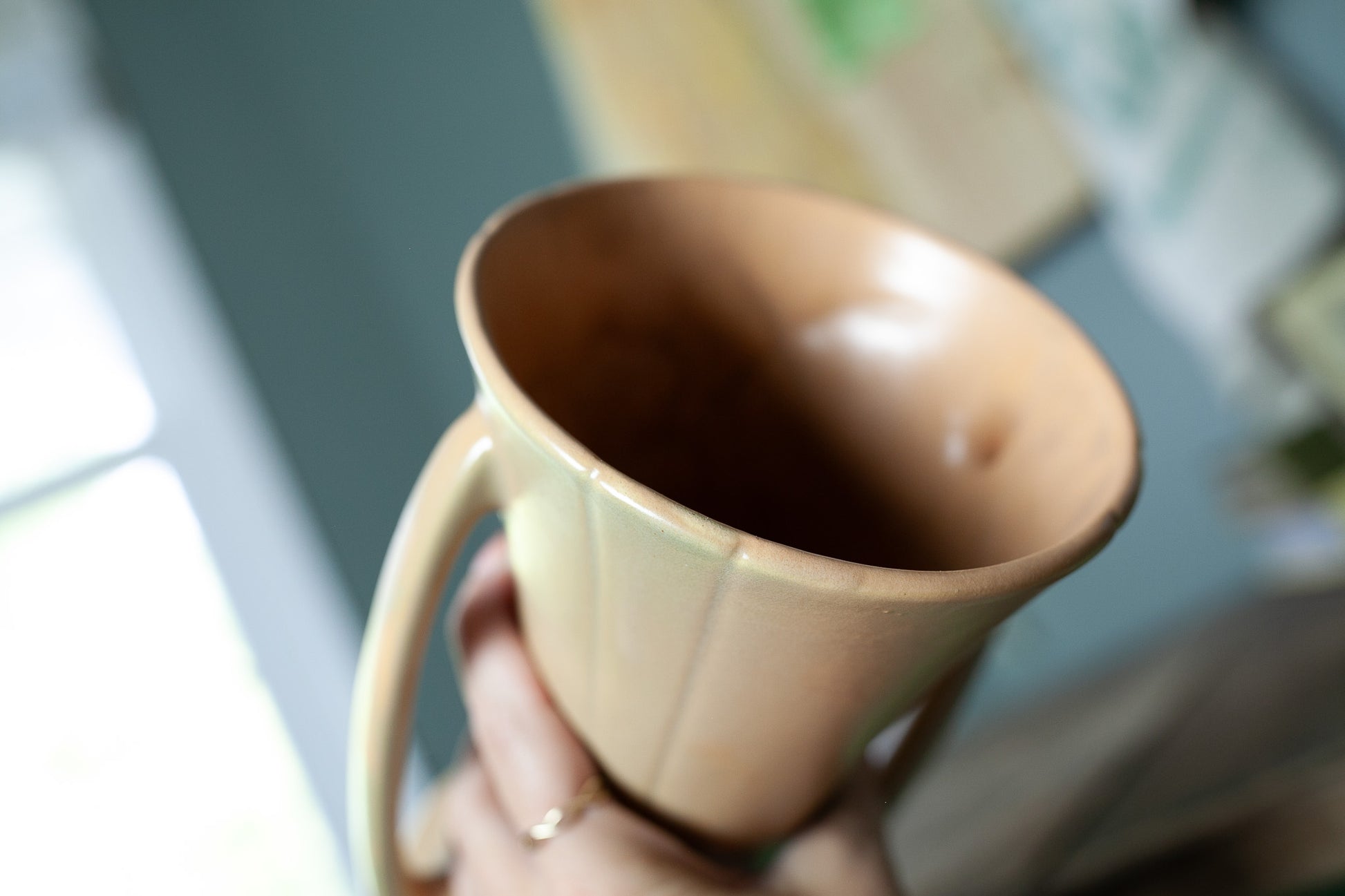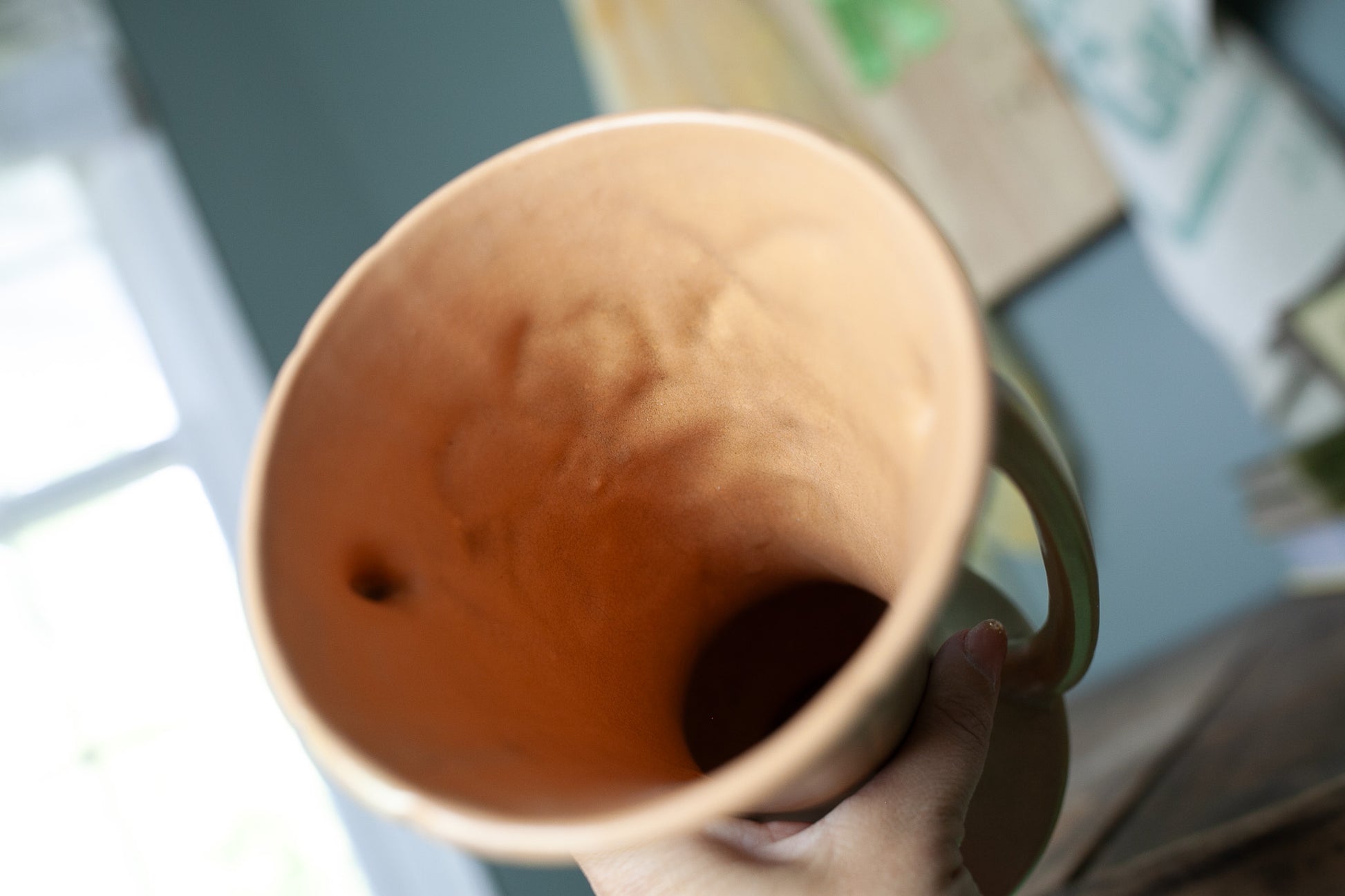 Measures 9.5” tall x 6.25” wide including handles 5.375” deep measured at rim